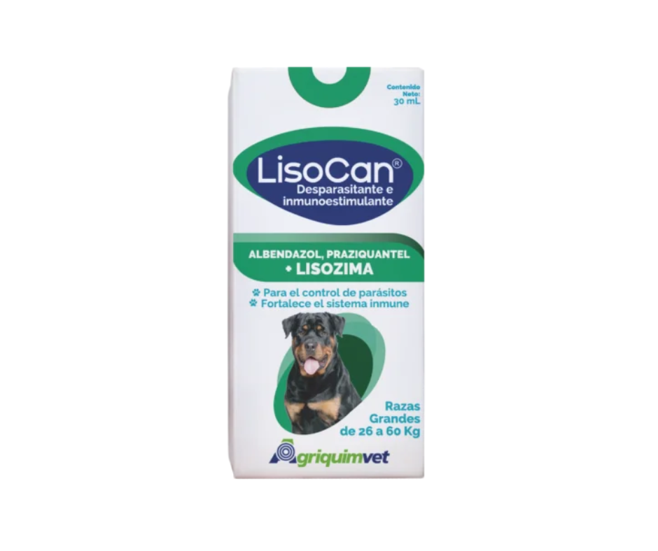 Es un desparasitante oral de amplio espectro para perros grandes (26–60 kg), eficaz contra parásitos intestinales comunes. Su fórmula segura mejora la salud digestiva, previene reinfestaciones y aporta vitalidad al animal.